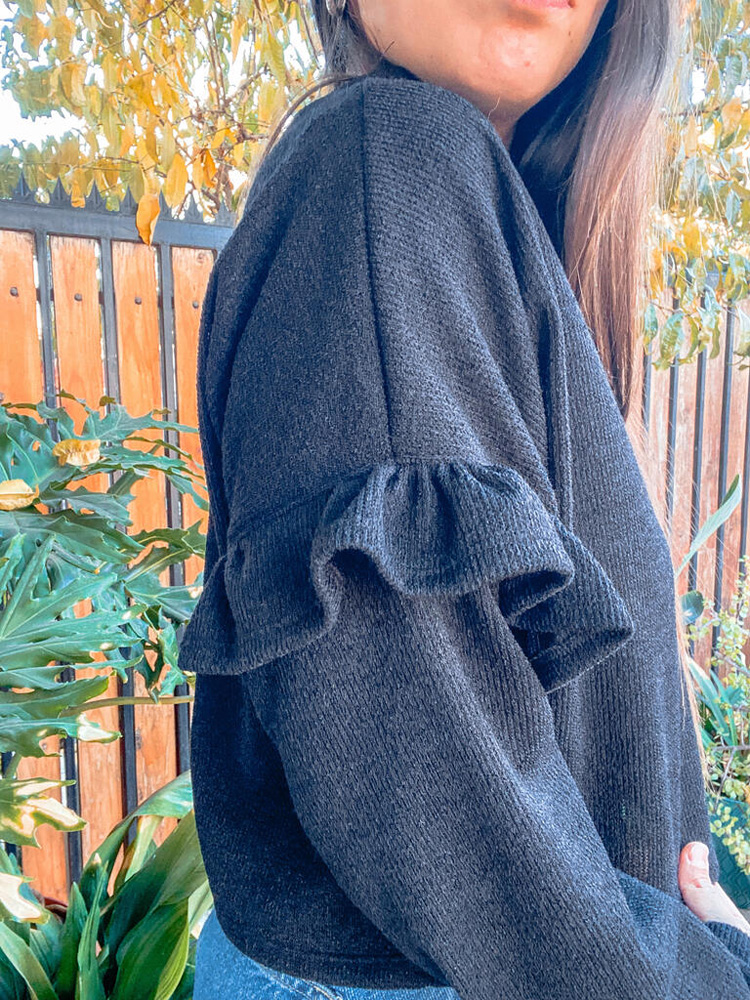 Sweater con vuelos en las mangas de largo modificable y tela lanilla.