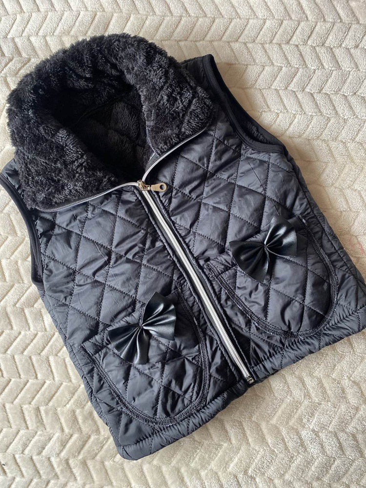 Puffer De Tela Acolchada Forrada Completamente Por Corderito. Bolsillo Con Aplicaciones En Ecocuero. Perfectas para el abrigo y estilo de las pequeñas : )