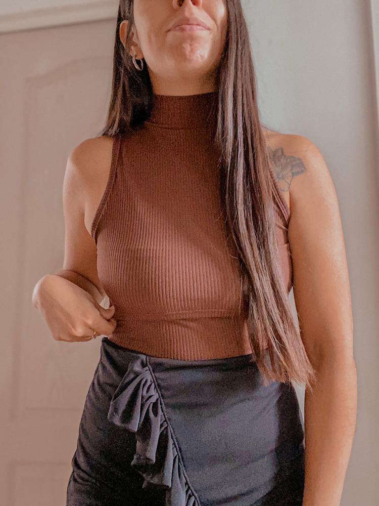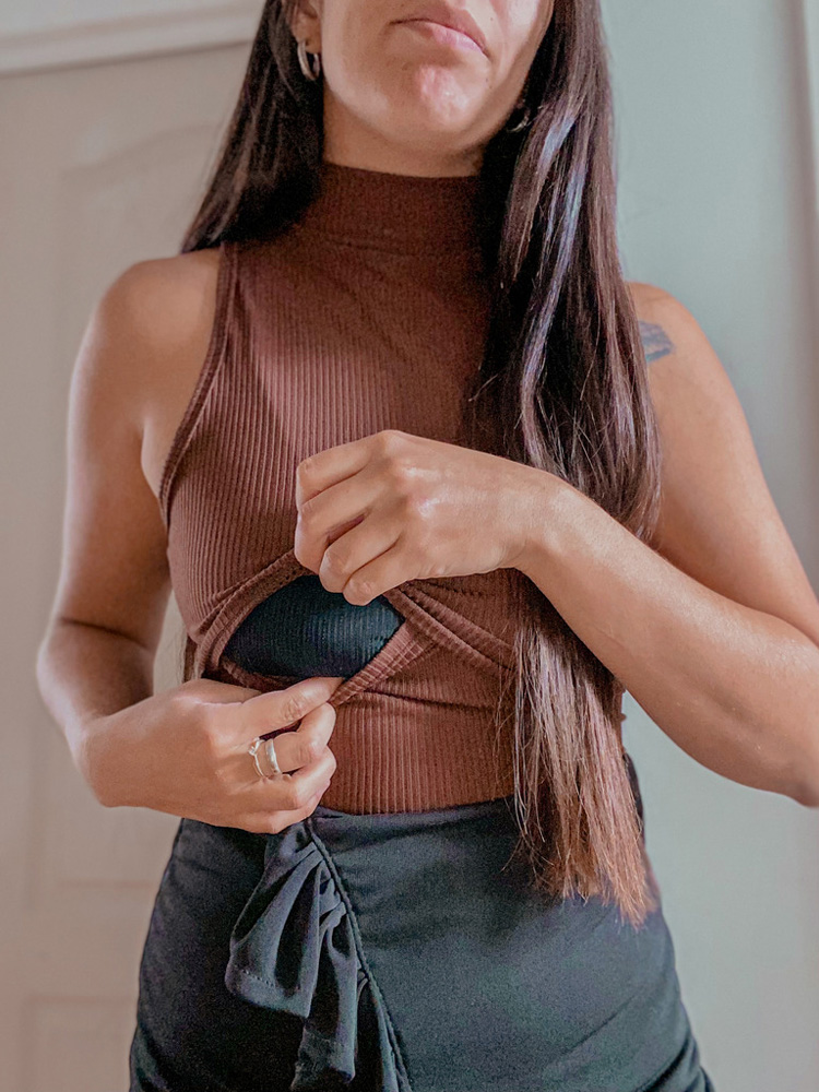 Body de lactancia con estilo halter, pensado para la comodidad en los momentos de amamantar. Tela canuton.