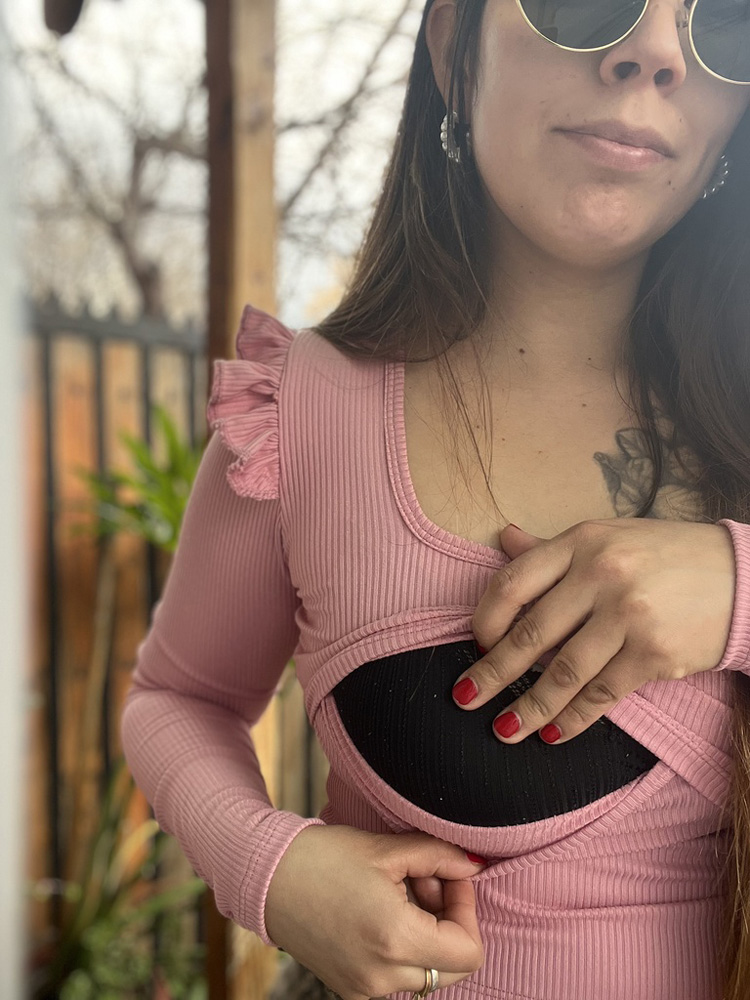 Polera de lactancia de tela canuton elasticada, holgada y con abertura para lactancia.